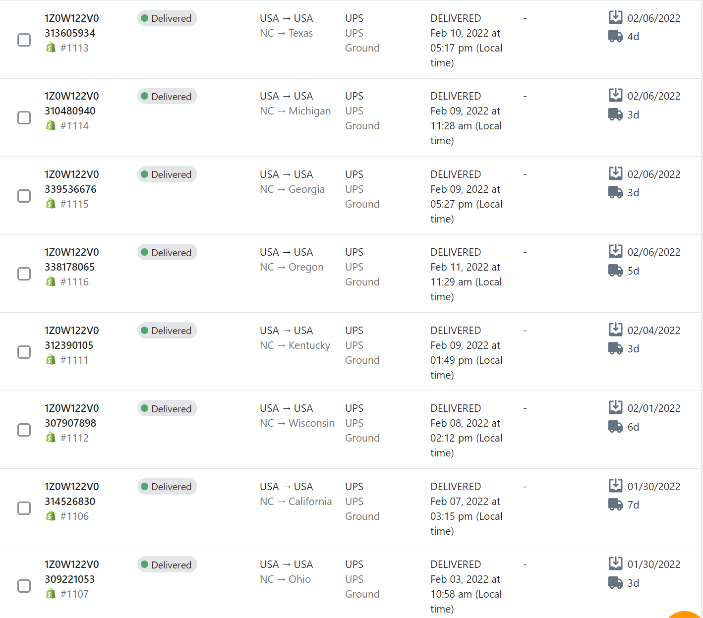 Past order delivery display(Screenshot from AfterShip's tracking of our site's shipments):